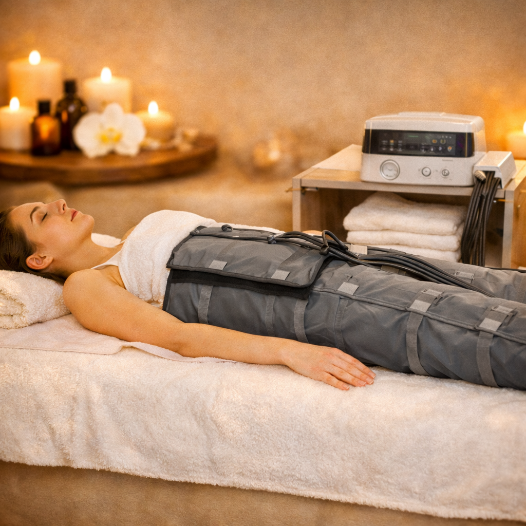 Luxuriöse Lymphdrainage und Pressotherapie zur Aktivierung des Lymphsystems und zur Unterstützung bei Anti -Cellulite für eine sichtbar glatte und angenehm leichtes Körpergefühl.